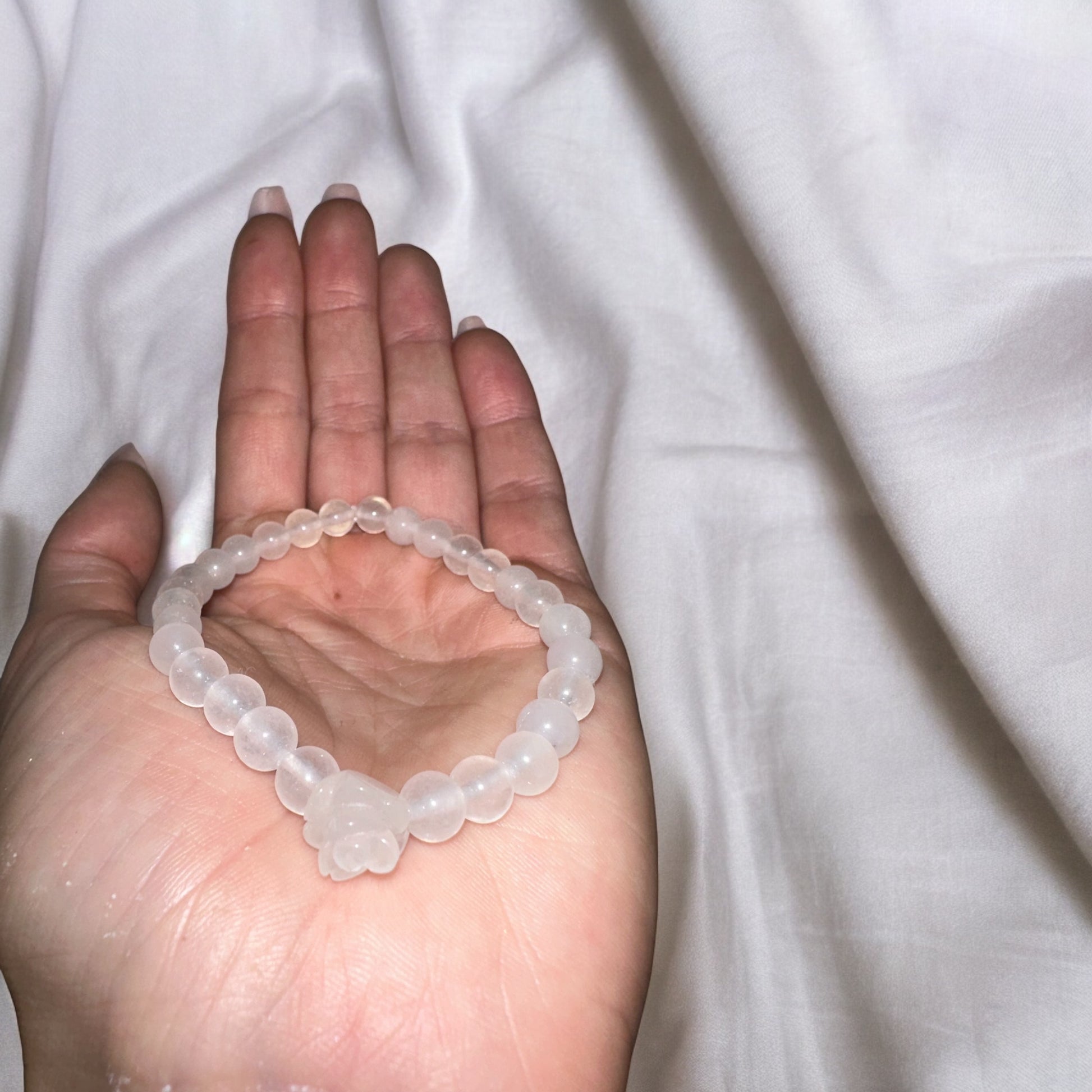 Additionally, white jade is thought to support the Crown Chakra, facilitating spiritual growth and enlightenment. It is believed to aid in deepening one's connection to higher realms and fostering a sense of divine protection. Many also regard white jade as a symbol of purity and grace, bringing a sense of calm and serenity to its wearer. Whether used in meditation, worn as jewelry, or kept in living spaces, white jade is cherished for its ability to bring balance, harmony, and a sense of inner peace.